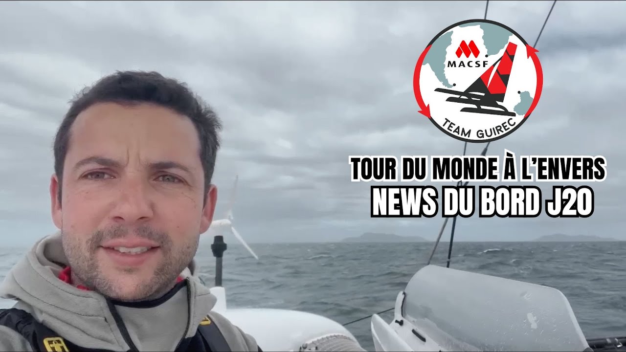 En direct du tour du monde à l'envers de Guirec Soudée à bord de l'Ultim MACSF En partenariat avec le groupe MACSF et Voile MACSF Freelance.com, le fonds de dotation Liamm, MGS Industries, Batisanté, Caraibe Marine, Guy Cotten, Le Chameau, SLB Pharma. crédit : team Guirec MACSF