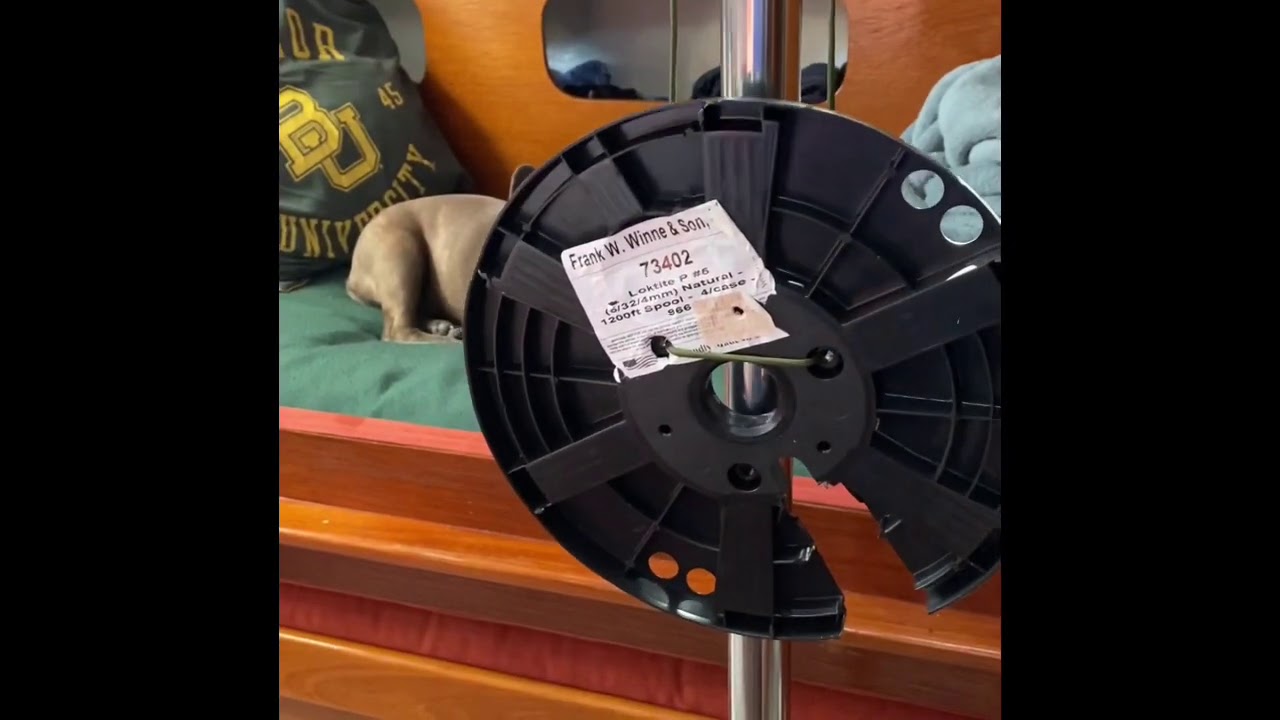Not having access to much in terms of tools, space, or material, sometimes you have to get creative to help make life more comfortable while living on a sailboat. I made a collapsible coffee table to hang and stow away quickly from a piece of paracord, a grocery bag, and an end cap from a spool of crabbing line. Not bad 👍